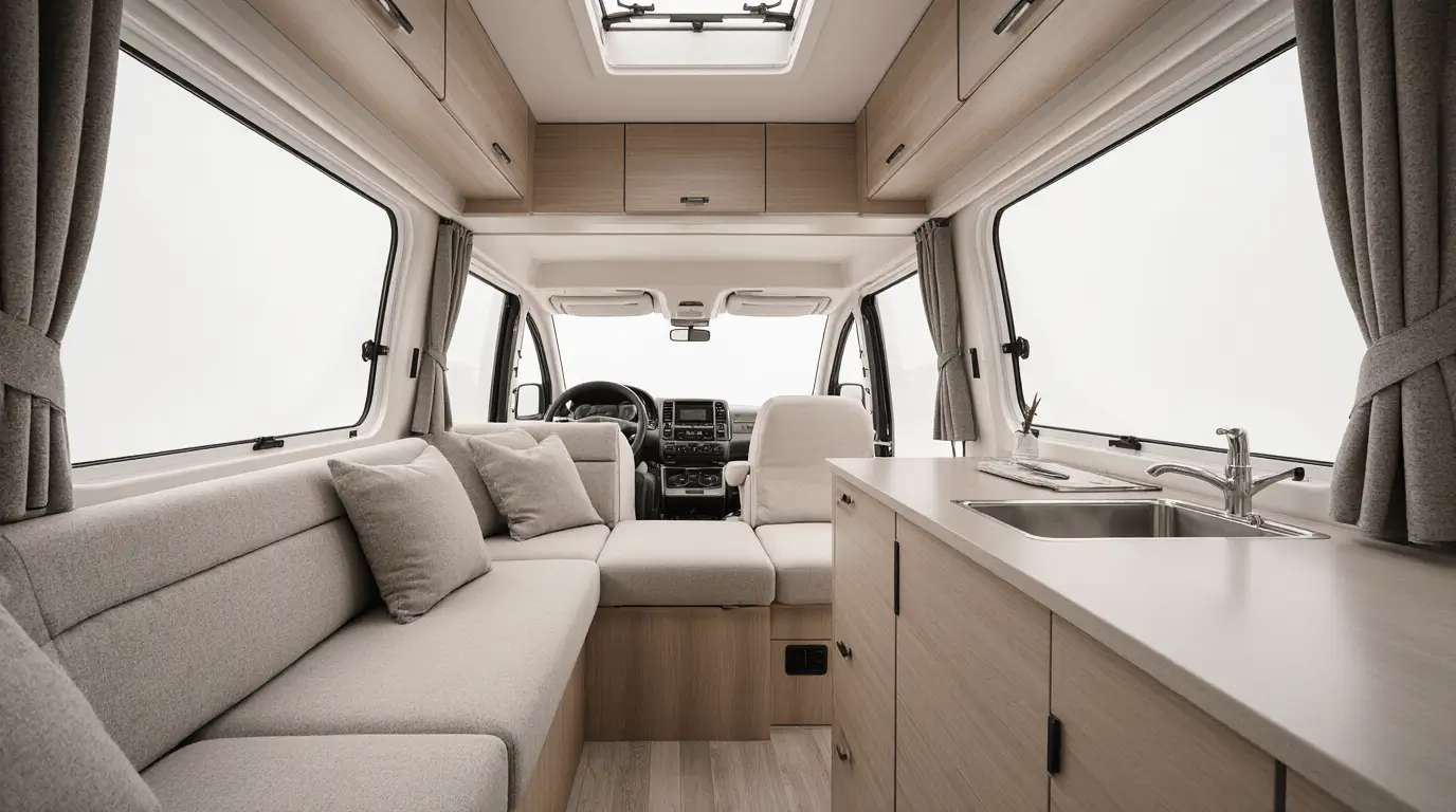 Designing for a 2-berth caravan means prioritizing dual-purpose zones. Seating areas that convert into beds and compact dining setups keep the space flexible without overcrowding.